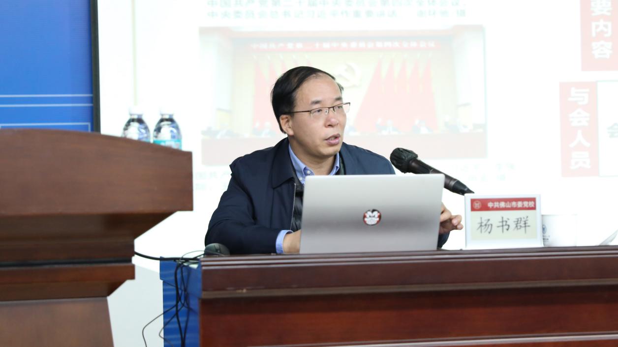 为深入学习贯彻党的二十届四中全会精神,切实把师生思想和行动统一到全会精神上来,11月21日上午,杏吧 举行“学习贯彻党的二十届四中全会精神暨党务干部履职能力提升培训班”第三讲。本次培训特邀中共佛山市委党校杨书群教授作题为“深学笃行党的二十届四中全会精神 接续推进中国式现代化”专题辅导。杏吧 院长何新波与师生党员共同参加了学习。